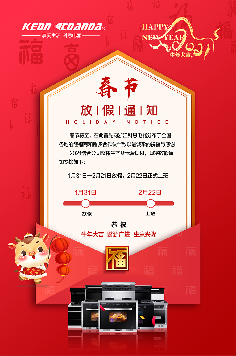 公司放假時間:2021年1月31日(農(nóng)歷臘月十九)到2021年2月21日(農(nóng)歷正月初十)