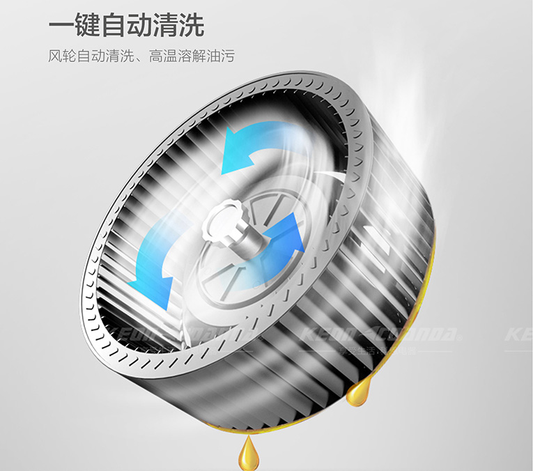 好品牌集成灶光有大吸力還不行,科恩智能蒸烤消一體集成灶還配備一鍵熱化油自動清洗功能,無需人工干預,僅需輕輕一按,全方位80°高溫環(huán)繞蝸殼,高溫熱融油垢,快速軟化油漬,高速甩掉油污,油污隨風輪離心力甩出后,自動流入油盒,風機風輪常年無黏著,保持持久大吸力。