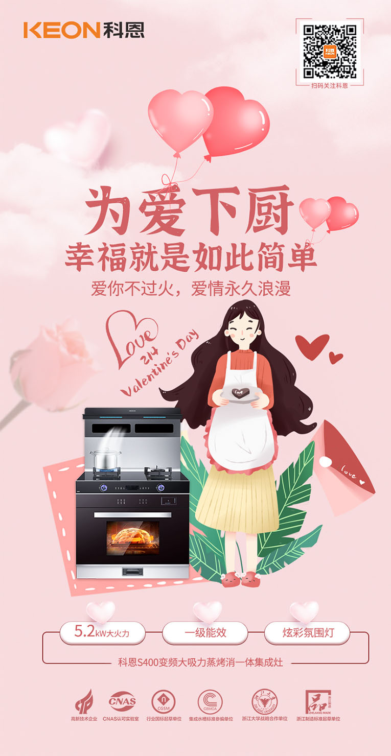 浪漫的情人節(jié),給心愛的她一個(gè)小驚喜小浪漫,能想到最浪漫的事,就是和你一起慢慢變老,一起做很多頓飯~用人間煙火,治愈一身疲憊,一起吃飯是家庭生活最重要的儀式感。集成灶十大品牌、廚電行業(yè)十大品牌科恩S400變頻大吸力蒸烤消一體集成灶,蒸烤同步美味加倍,把更多美好時(shí)光留于家人,不必再囿于廚房,也能收獲美味與愛,讓你的時(shí)間慢下來。