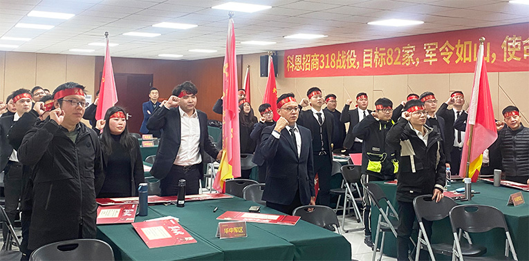 總指揮錢昌敏帶領(lǐng)公司各領(lǐng)導(dǎo)、各戰(zhàn)區(qū)作動員講話,并制定了本次招商峰會的戰(zhàn)略方向和執(zhí)行策略,提出作戰(zhàn)目標(biāo),希望每位科恩人能夠以百分百的狀態(tài)投入工作,以堅(jiān)持不懈的精神砥礪前行??贫骷稍钤谌珖鴵碛薪?000家專賣店,相信在大家的不懈奮斗下,將全力沖刺2022!