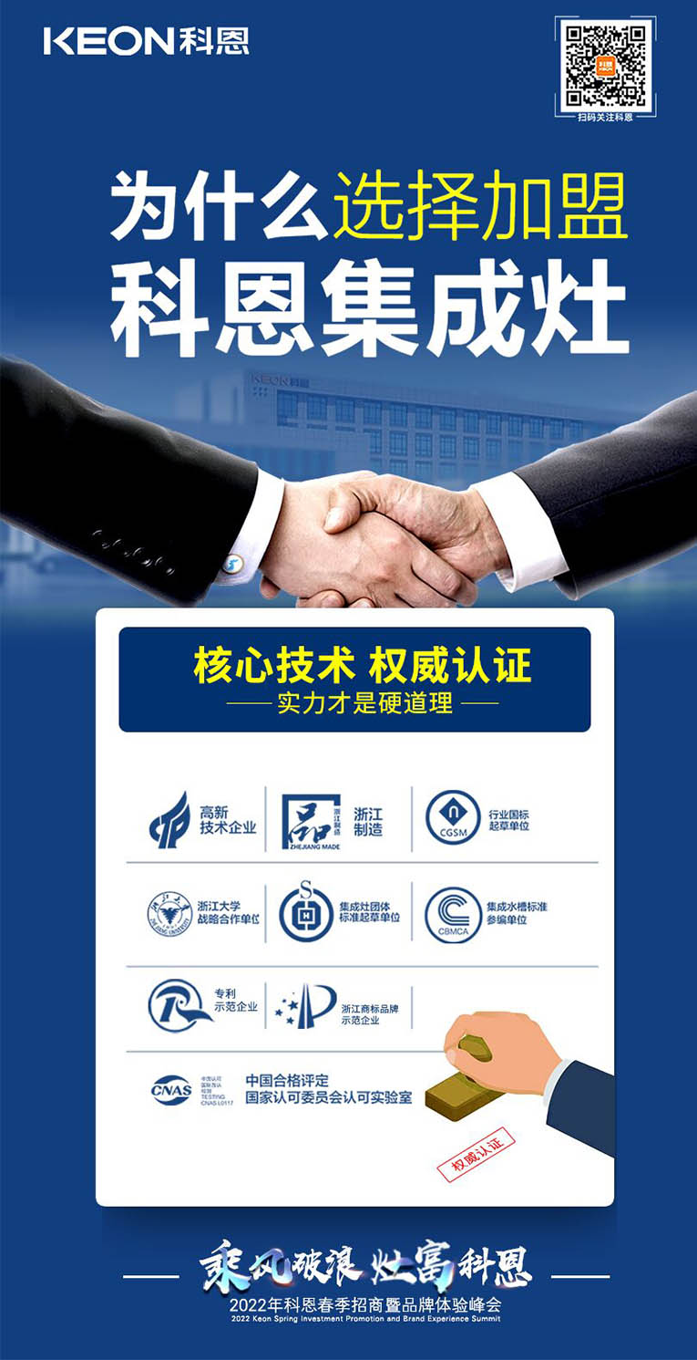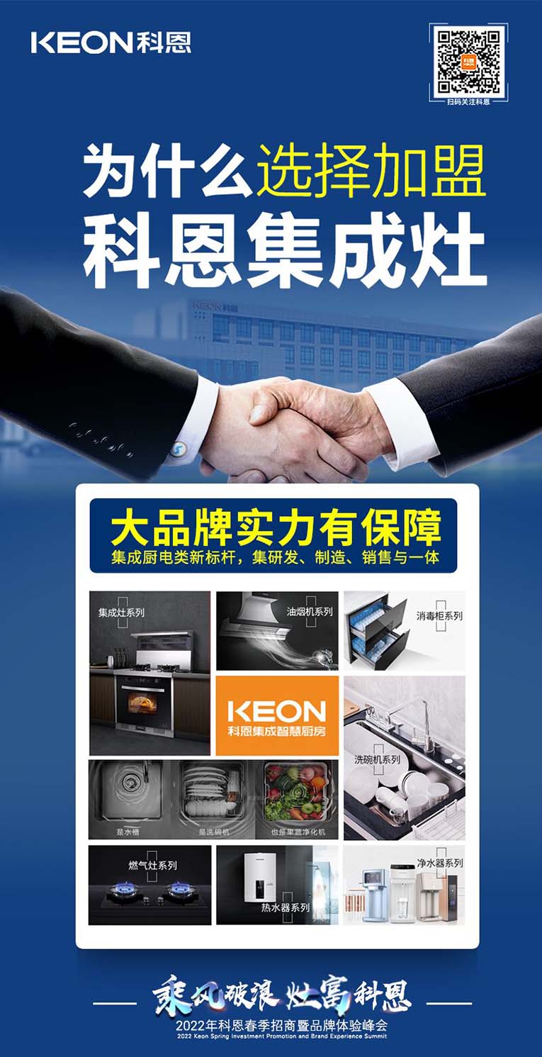 “乘風(fēng)破浪,灶富科恩”2022科恩春季招商暨品牌體驗峰會將于3月18日舉行,選擇大于努力,抓住時代機遇!集成灶十大品牌、廚電行業(yè)十大品牌科恩集成灶具備優(yōu)于業(yè)界的技術(shù)、高質(zhì)量的保證、強大的企業(yè)實力、有保障的售后等優(yōu)勢,實力加盟的不錯之選。