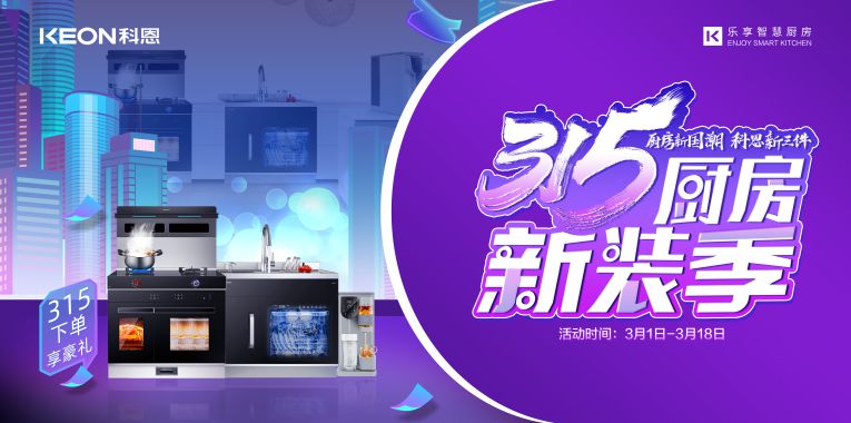 3月1日-3月18日進科恩門店,集成灶十大品牌、廚電行業(yè)十大品牌科恩集成灶315廚房新裝季,實力見證好品質(zhì)!