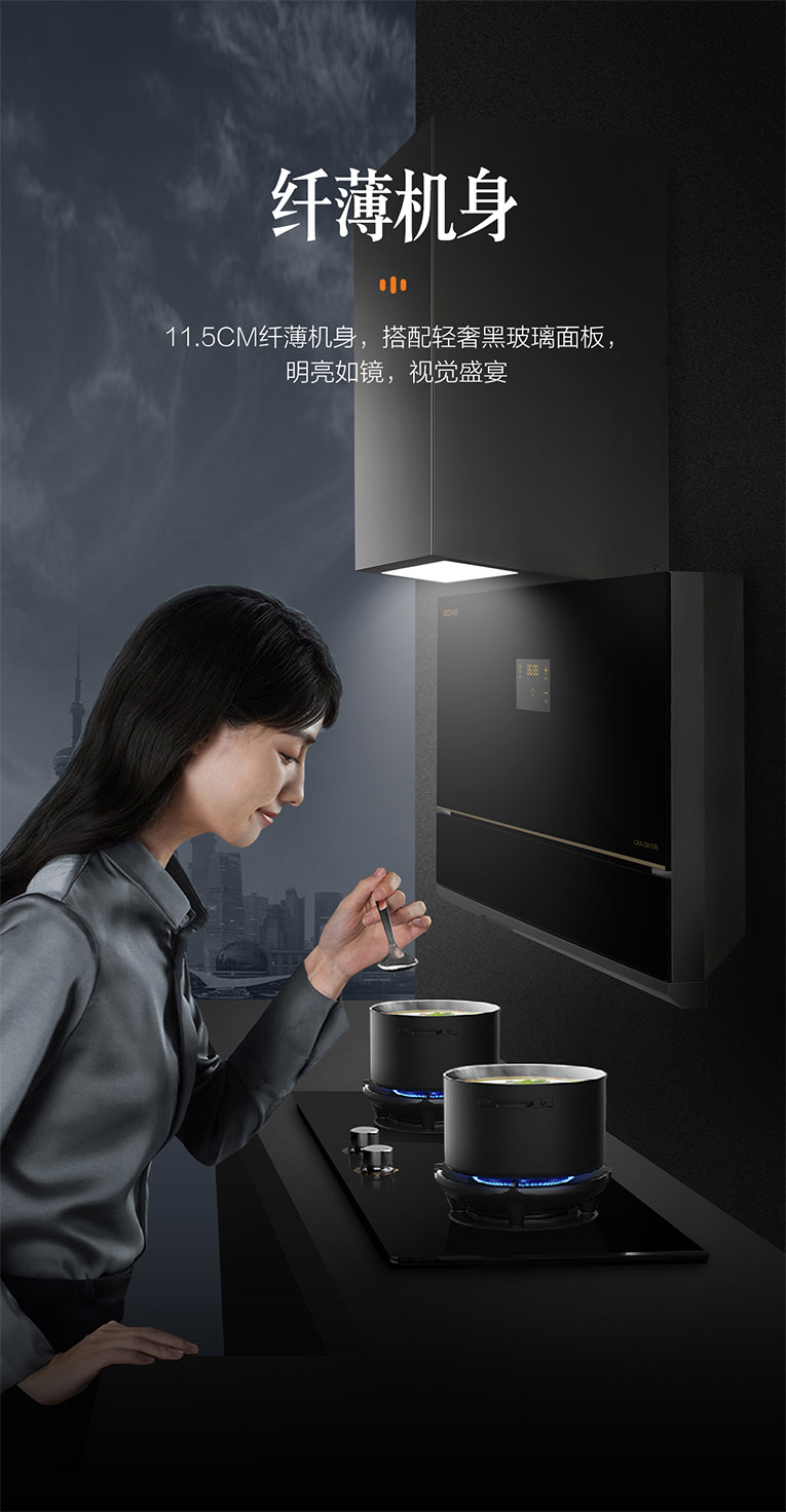 廚房環(huán)境要將就?絕不同意!高顏值的廚房離不開高性能的廚電搭配,集成灶十大品牌、廚電行業(yè)十大品牌科恩新一代大吸力煙機7350,大吸力,不跑煙!整機采用輕奢黑晶玻璃面板,11.5cm纖薄機身,搭配大寬屏柔光照明,烹飪視野更加開闊,無需低頭就能分辨調味料,盡情享受廚房的聚光燈。