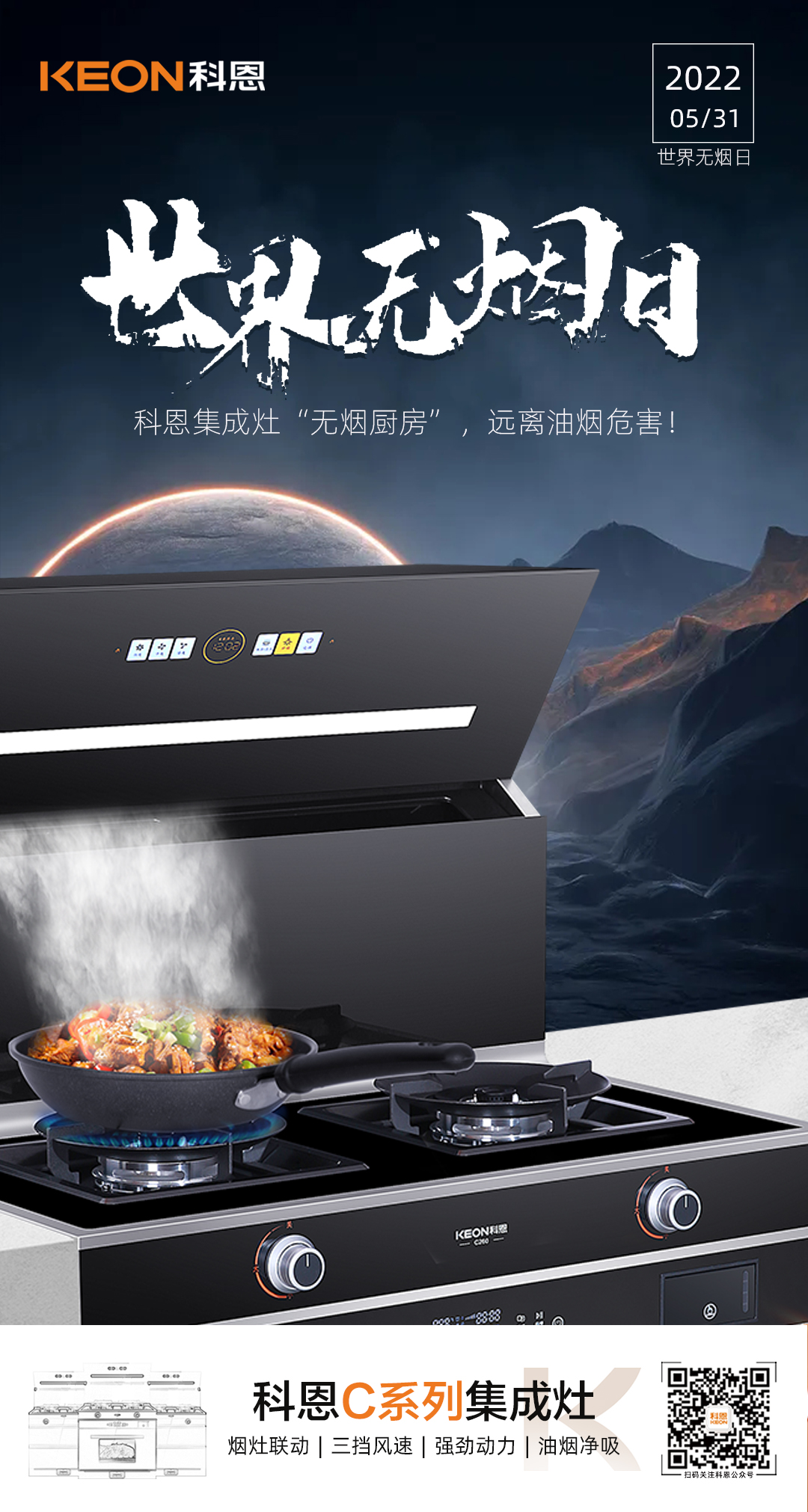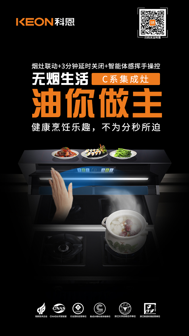 吸煙有害健康已是不爭的事實,近年來大家對于香煙危害已極為重視,但卻鮮少有人知道,其實廚房油煙比煙草危害來得更悄無聲息,特別是在喜歡熱油爆炒的中國家庭,油煙已然一躍成為影響健康的頭號隱形殺手 !告別油煙困擾,遠(yuǎn)離油煙綜合征,你需要一臺科恩C260蒸烤消炸集成灶,陪你度過猛火爆炒油煙不過臉的每一天,有了TA,天天都是無煙日!