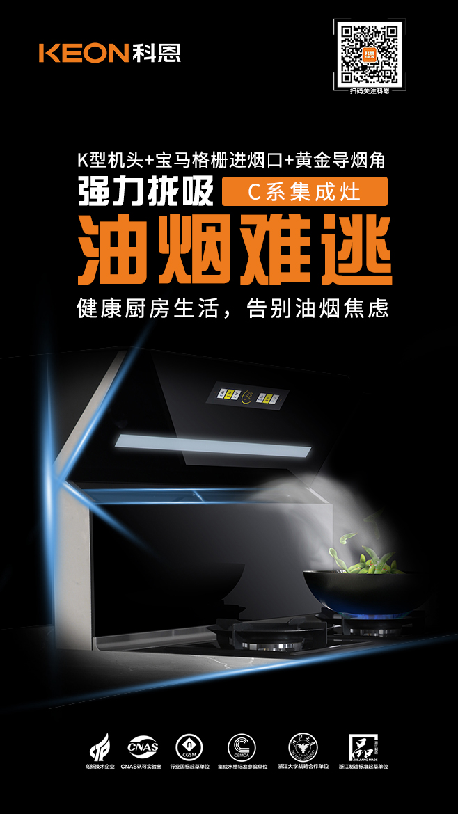 在烹飪環(huán)節(jié),側(cè)吸下排不跑煙是集成灶的必備基本功深受大眾喜愛,科恩C260在此基礎(chǔ)上突破常規(guī),創(chuàng)造性的采用以KEON首字母K為標(biāo)識的機頭設(shè)計,其俯沖式角度、搭配寶馬格柵進煙口,在深腔的加持下,攏吸效果更為出色,三者相輔相成,形成黃金控?zé)焻^(qū),同步搭配瞬吸大吸力,把油煙扼殺在萌芽狀態(tài),油煙不過臉,無懼猛火爆炒挑戰(zhàn),縱享無煙廚房!