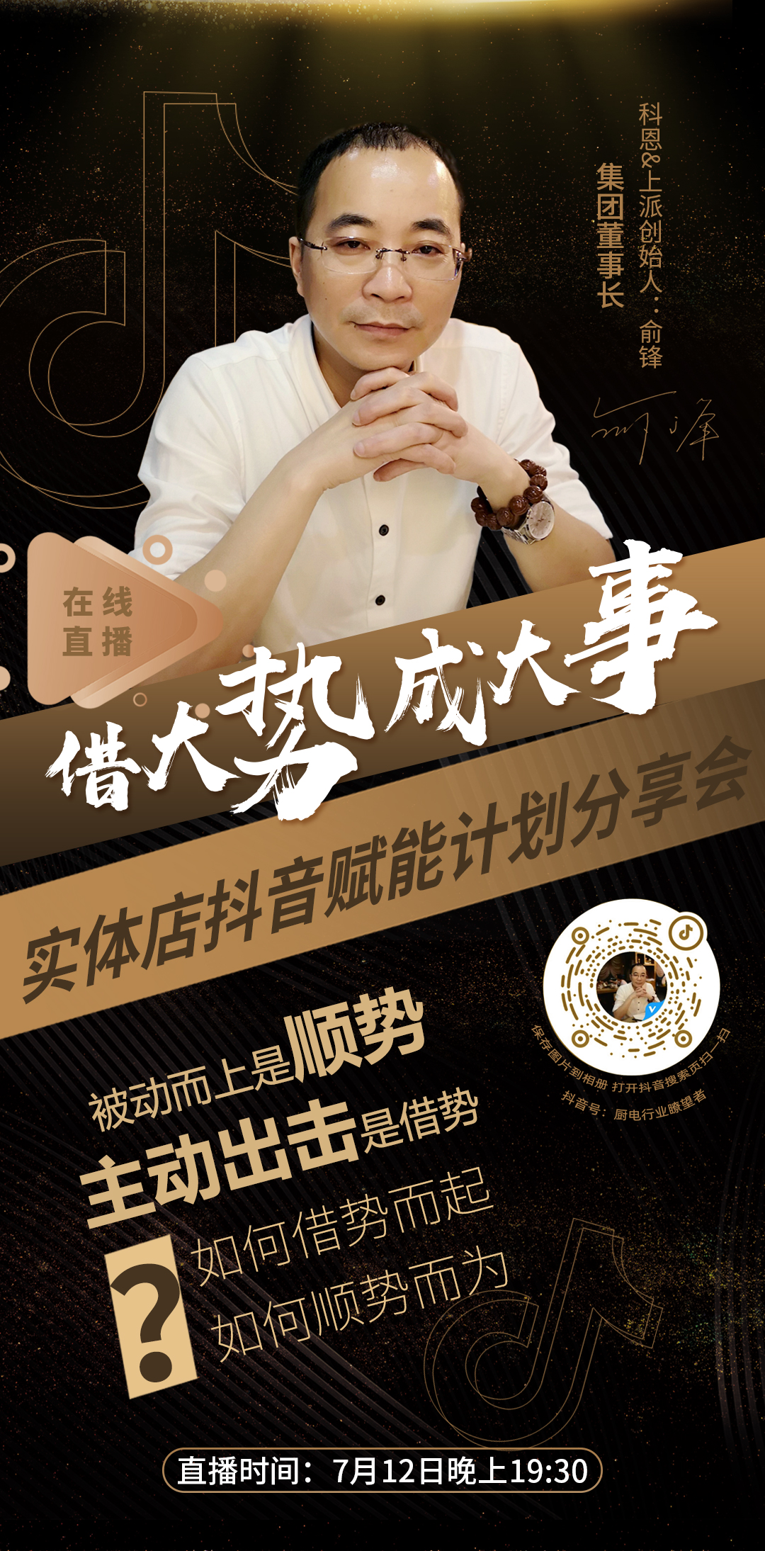 新的時(shí)代已然來臨,人貨場關(guān)聯(lián)重構(gòu),亦將是另一個(gè)江湖的開啟,你愿不愿意成為那個(gè)勇闖天涯,重構(gòu)江湖秩序的領(lǐng)路人?7月12日晚上19:30, 鎖定抖音直播間,董事長俞鋒親自掛帥,為您傾情分享流量變現(xiàn)盈利密碼!