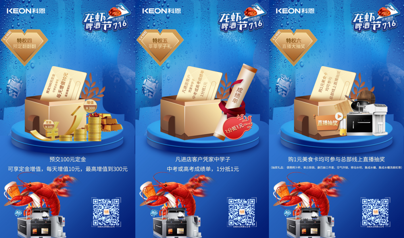 7月2日-7月16日,由科恩集成灶舉辦的“清涼一夏,無限暢飲”龍蝦啤酒節(jié)活動(dòng)正在如火如荼的進(jìn)行中,炎炎夏日,何以消暑,當(dāng)然是去科恩集成灶門店“蹭”免費(fèi)的空調(diào),現(xiàn)場(chǎng)不僅有各種口味的小龍蝦供大家品嘗、冰爽啤酒讓你清涼一夏,更有進(jìn)店有禮、集成有禮、轉(zhuǎn)發(fā)有禮、預(yù)定有禮、莘莘學(xué)子禮、直播大抽獎(jiǎng)等精彩活動(dòng)等你參與!
