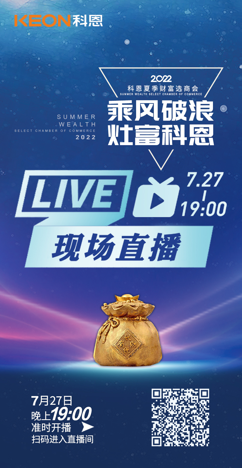 乘風(fēng)破浪·灶富科恩2022科恩夏季財(cái)富選商會(huì)進(jìn)入倒計(jì)時(shí)1天,鑒于疫情呈多點(diǎn)散發(fā)多地頻發(fā)的形式,科恩電器將于7.27晚19時(shí)召開全國直播線上選商會(huì),用直播打破地域局限,“0距離”交流,足不出戶亦能覓得良機(jī)!