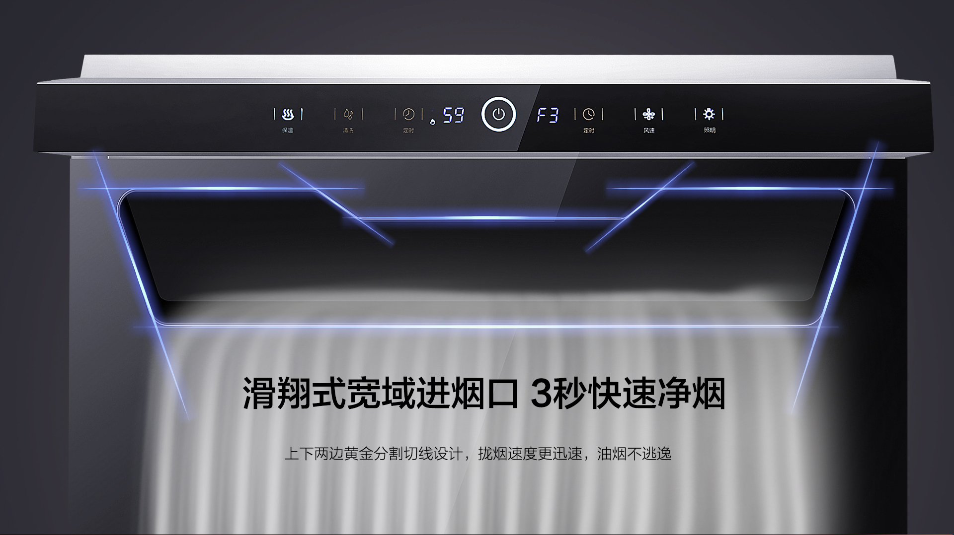 科恩D520ZK摒棄了集成灶千篇一律的外觀形象,利用星際云端與廚房跨界聯(lián)動,實現(xiàn)高顏值與卓越性能的完美融合,經(jīng)典L型時尚外觀與滑翔式寬域進煙口相結(jié)合,宛若星際般神秘又引人遐想,整體風格兼具柔和與俊朗,帶來耳目一新的外觀體驗。其上下兩邊黃金分割切線設(shè)計,搭載低空近吸技術(shù),緊鎖升騰油煙不上臉,攏煙速度更迅速。