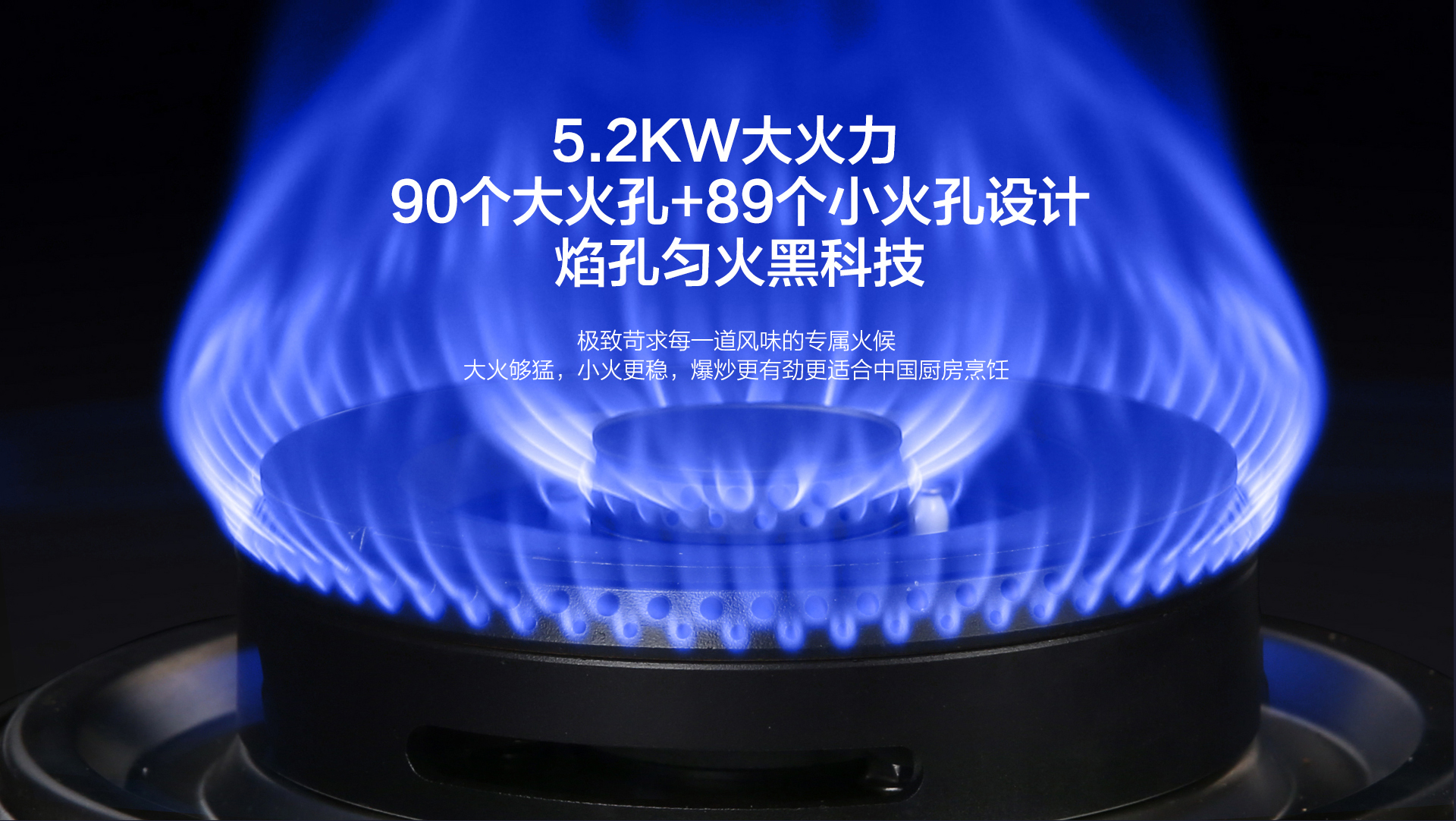 ◆5.2kW大火力,一級能效,更適合中國廚房烹飪,大火夠猛,小火更穩(wěn),爆炒更有勁 !