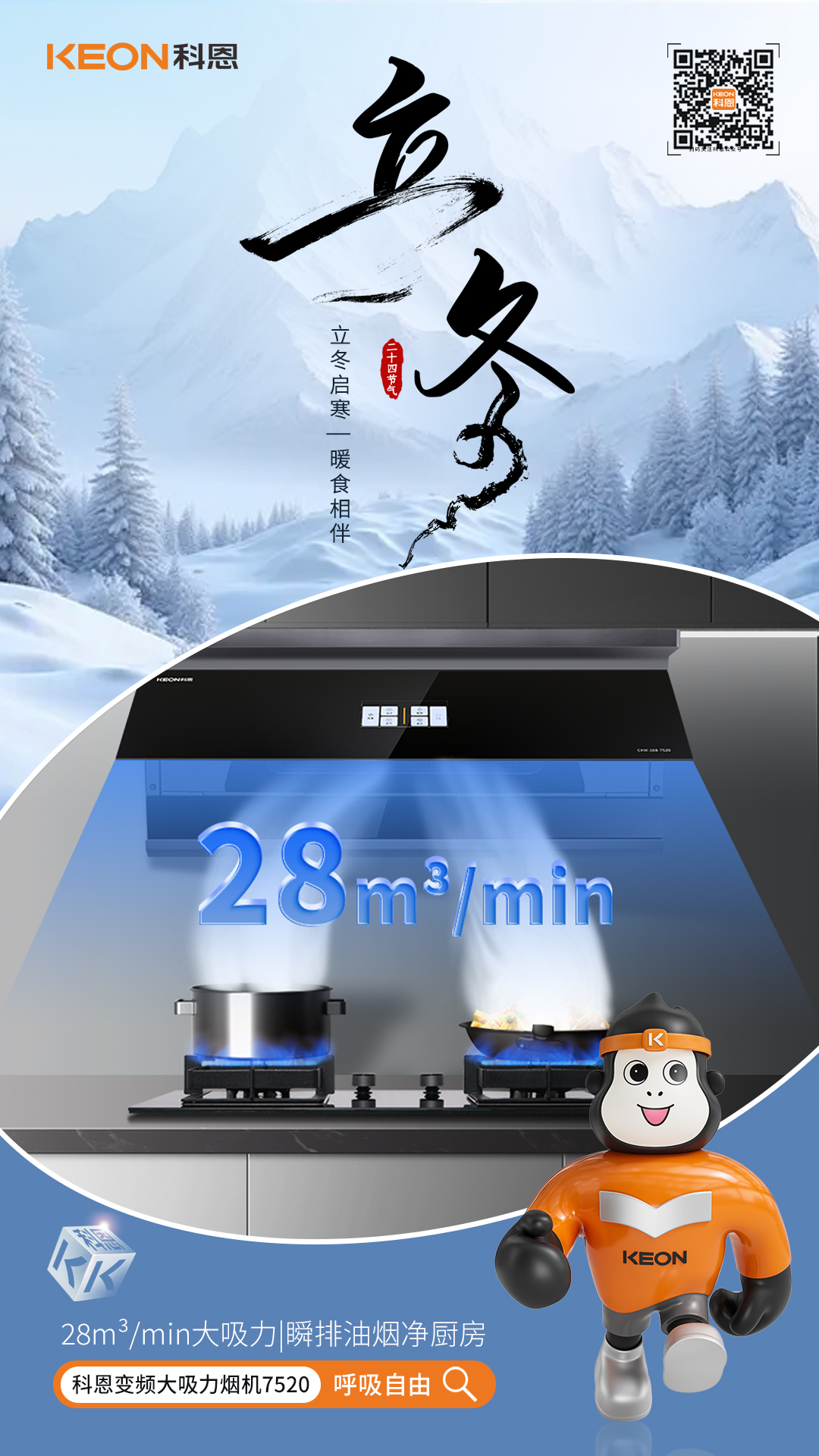 舊廚煥新,暖廚無(wú)憂(yōu)。立冬暖味需好器,廚房煥新正相宜,科恩電器全程相伴,打造智能健康新廚房。讓廚房暖起來(lái),讓美味不等待,共度暖冬好食光。
