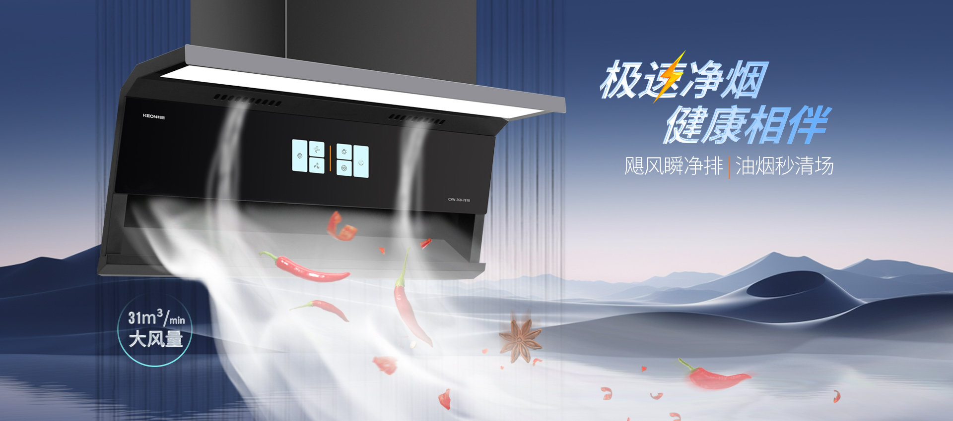 空間煥新,凈美廚房。舊煙機(jī)笨重占空間難適配,換新品怕拆櫥柜,2.5cm輕薄機(jī)身解你顧慮,冰川灰鑲邊適配多風(fēng)格,天鵝頸上仰設(shè)計釋放空間,烹飪操作從容坦蕩。爆炒濃煙,瞬吸凈場。辣椒入鍋油煙瞬間升騰,開放式廚房全家遭“煙熏”, 31m³/min大風(fēng)量強(qiáng)勢捕獲,1350Pa變頻風(fēng)壓破擁堵,高峰時段排煙依舊順暢,清新空氣常駐烹飪時光。全域攏煙,無隙可逃。吸力再大跑煙也枉然,895mm寬域控?zé)熤琳?/span>,負(fù)壓內(nèi)傾設(shè)計順勢直排,頂吸側(cè)吸協(xié)同發(fā)力,下層攏煙上層阻逃逸,輕重油煙全被精準(zhǔn)鎖定。