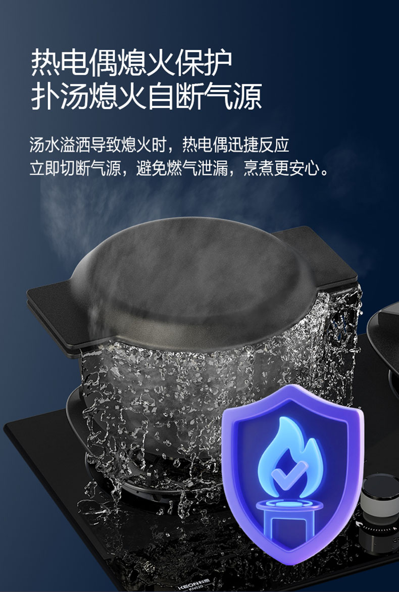 • 意外熄火保護(hù),火滅即刻切斷氣源,保障廚房安全
