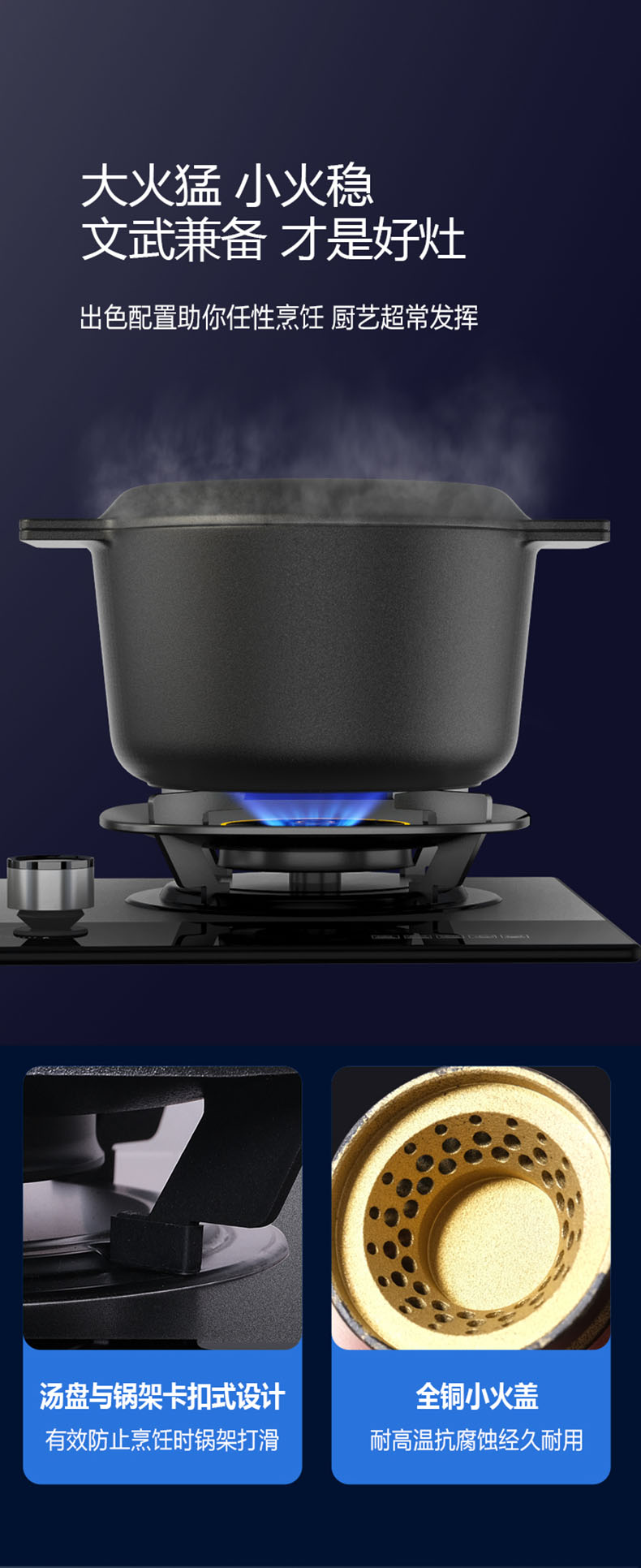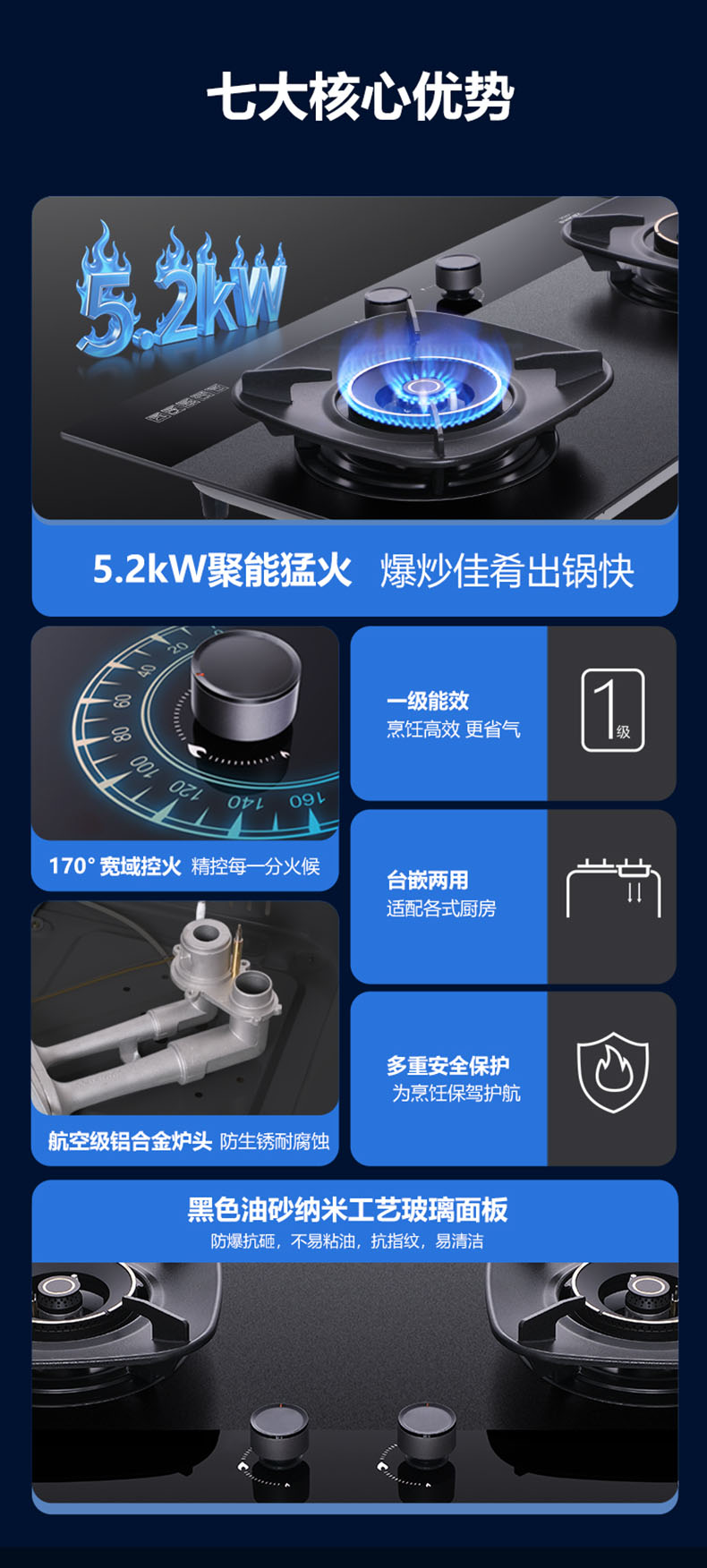 • 三噴引射,立體進(jìn)氣,5.2kW大火力盡享爆炒
