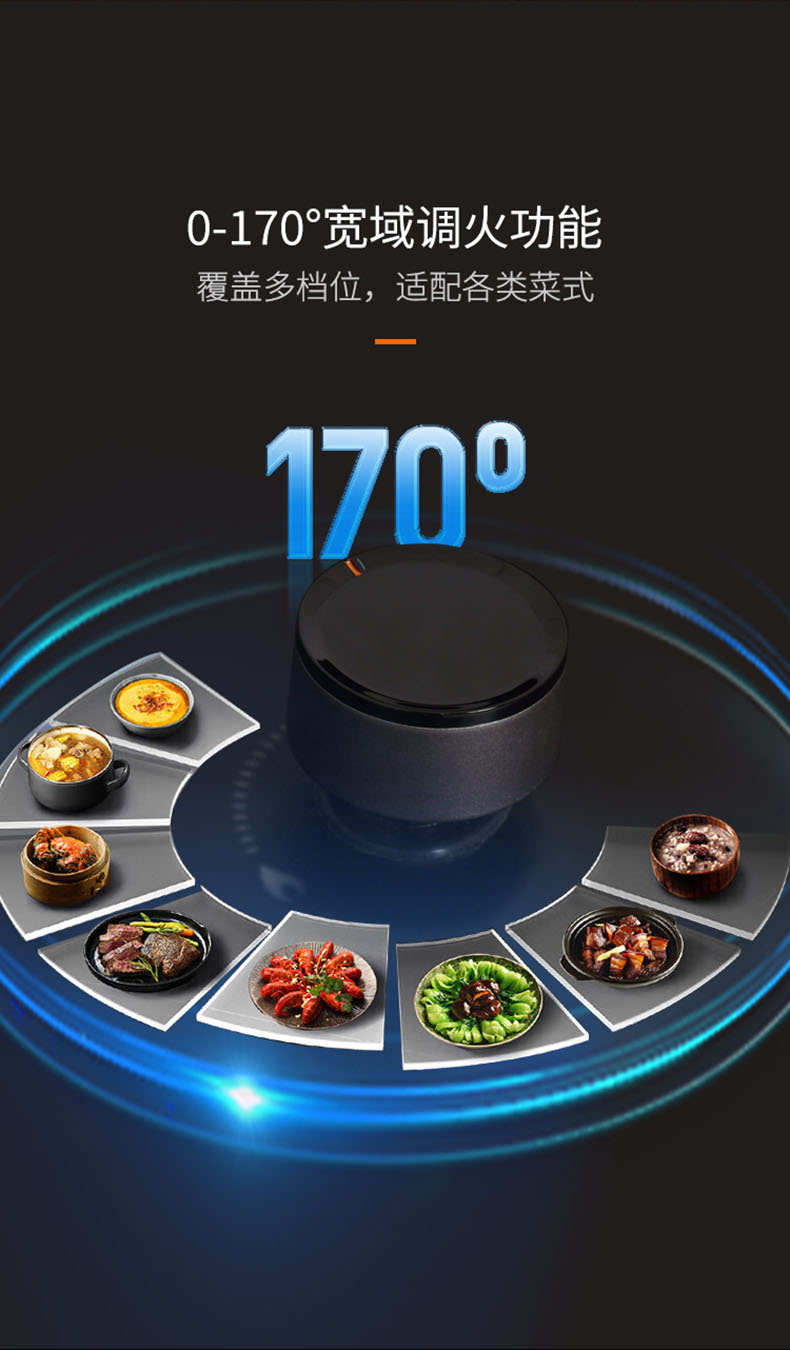 - 0-170°寬域調(diào)火功能,覆蓋多檔位,適配各類菜式